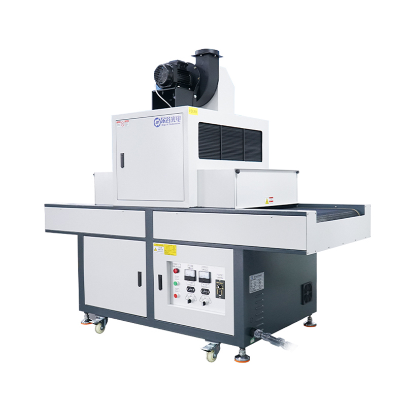 东莞市尔谷光电科技有限公司研发生产的这款 UV固化设备配 2 支 8KW高压汞灯,顶部向下照射,波长 200-450nm(峰值 365nm),进料口高度:30-200mm可调,特氟龙网带 输送速度:0.5-8 m/min (米/分钟),每支灯可单独控制。支持定制,让设备更贴合您的实际生产需求,为客户打造专属的 UV 漆固化解决方案。
